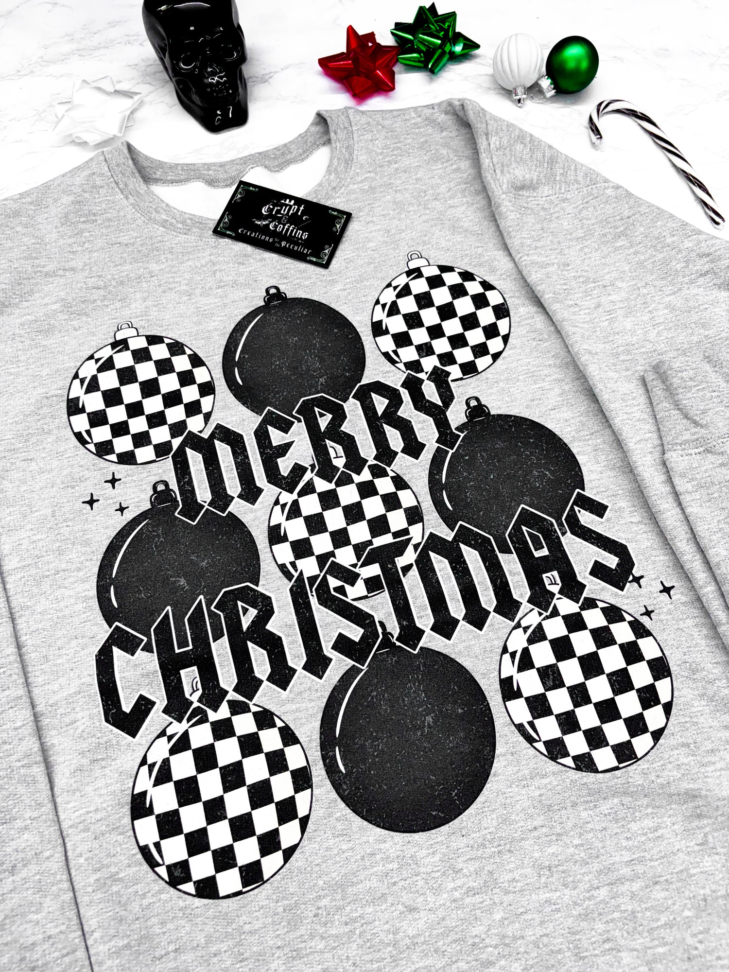 Checkered Ornaments | Gray Crewneck Sweater